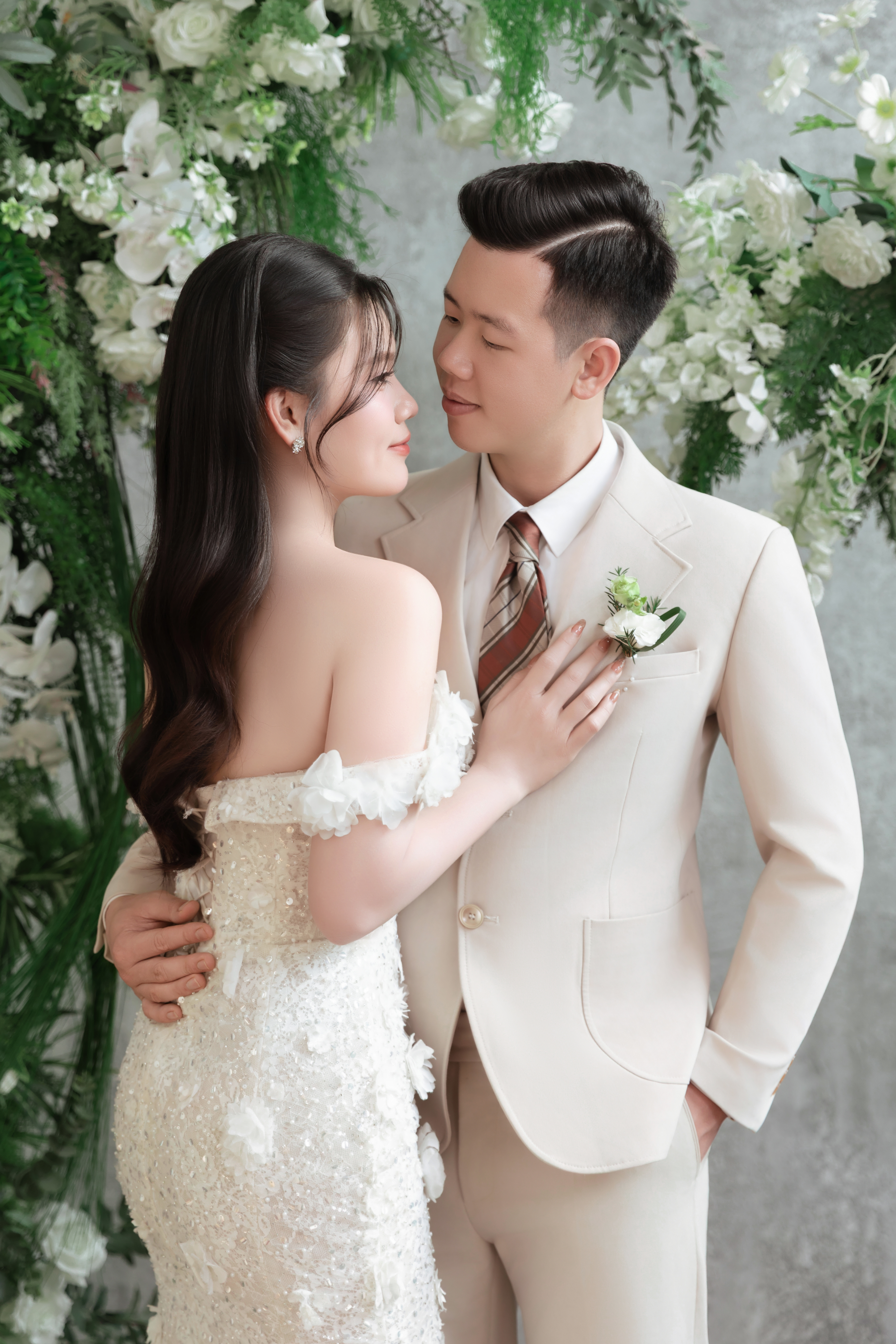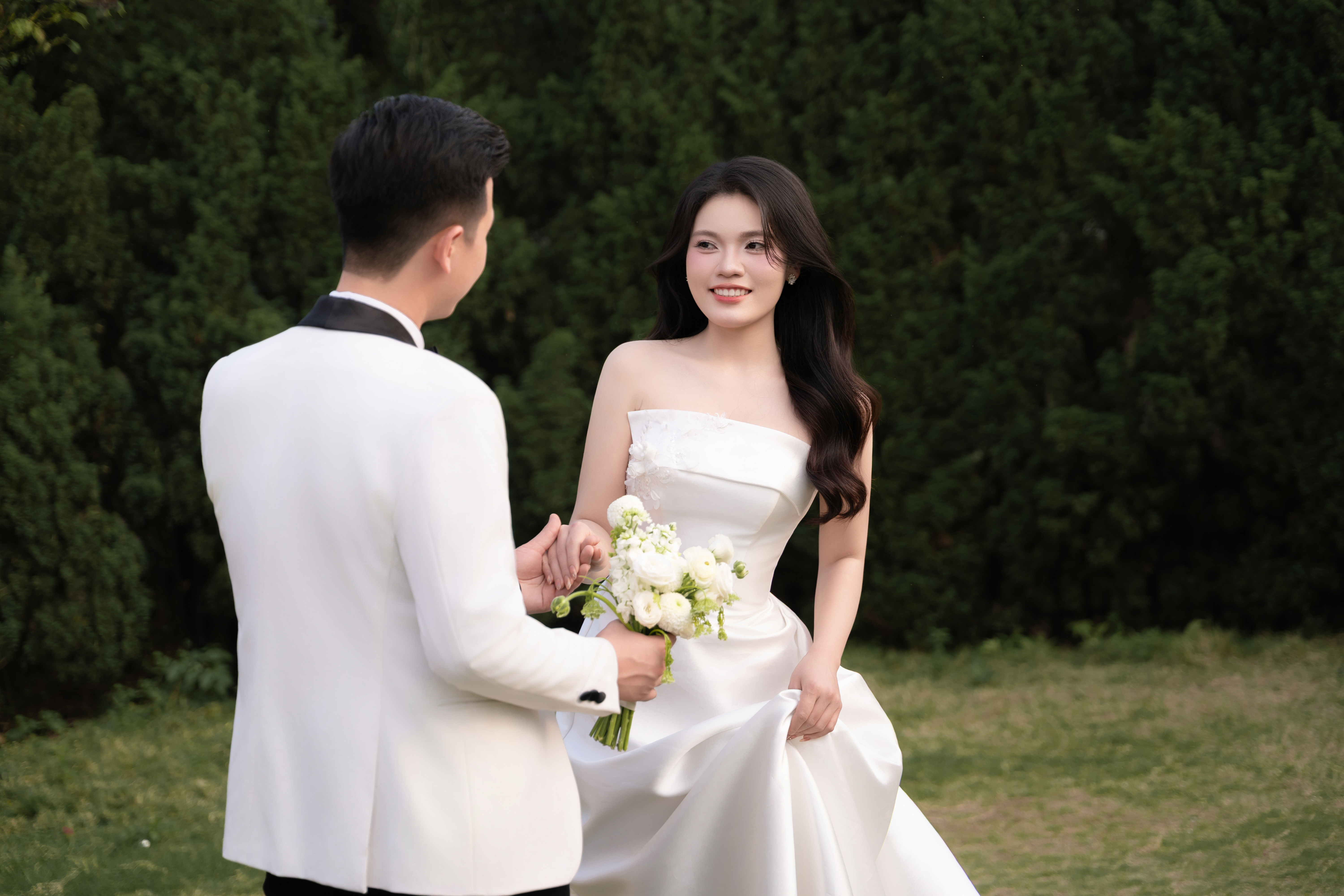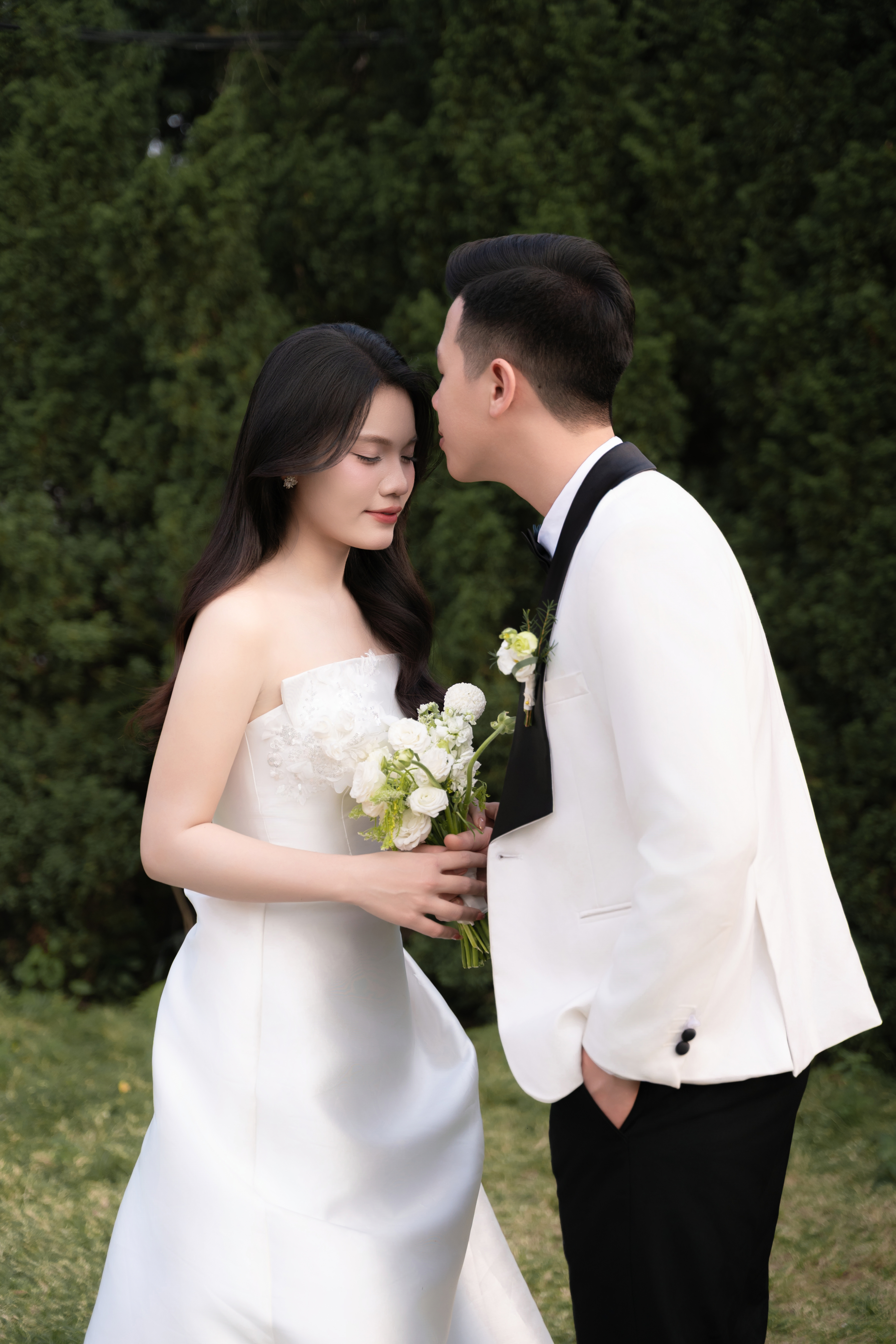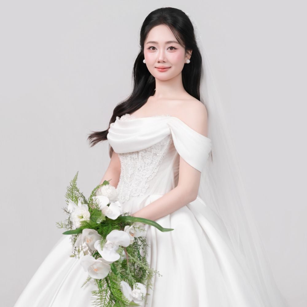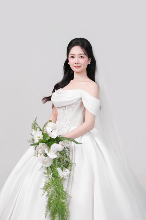 Cô dâu của anh là người con gái mang vẻ đẹp dịu dàng và tinh tế. Cô gái biết quan tâm, biết lắng nghe, mang trái tim ấm áp và chân thành.